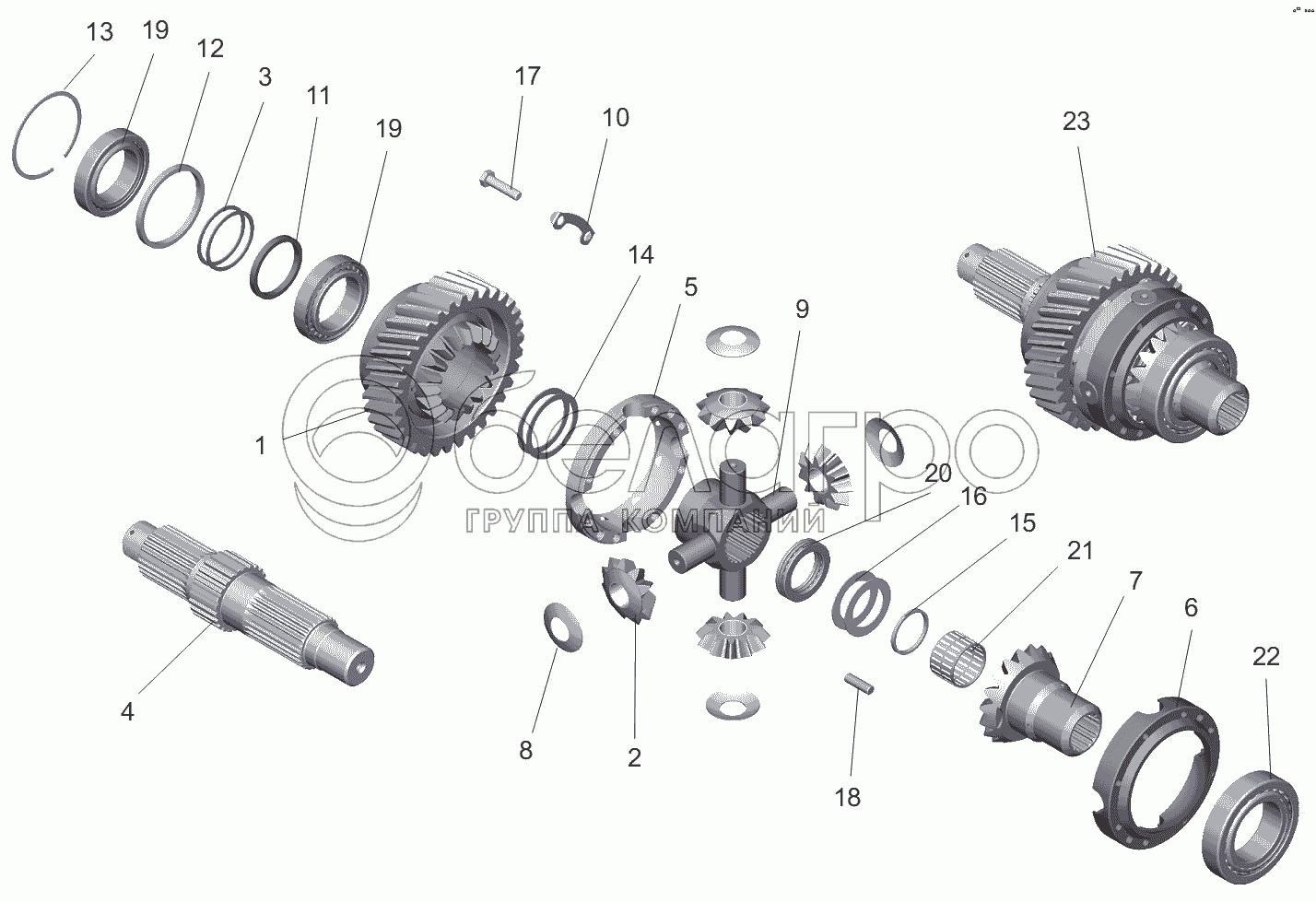Каталог запасных частей к технике: МАЗ-551605. Редуктор среднего моста. Дифференциал Межосевой