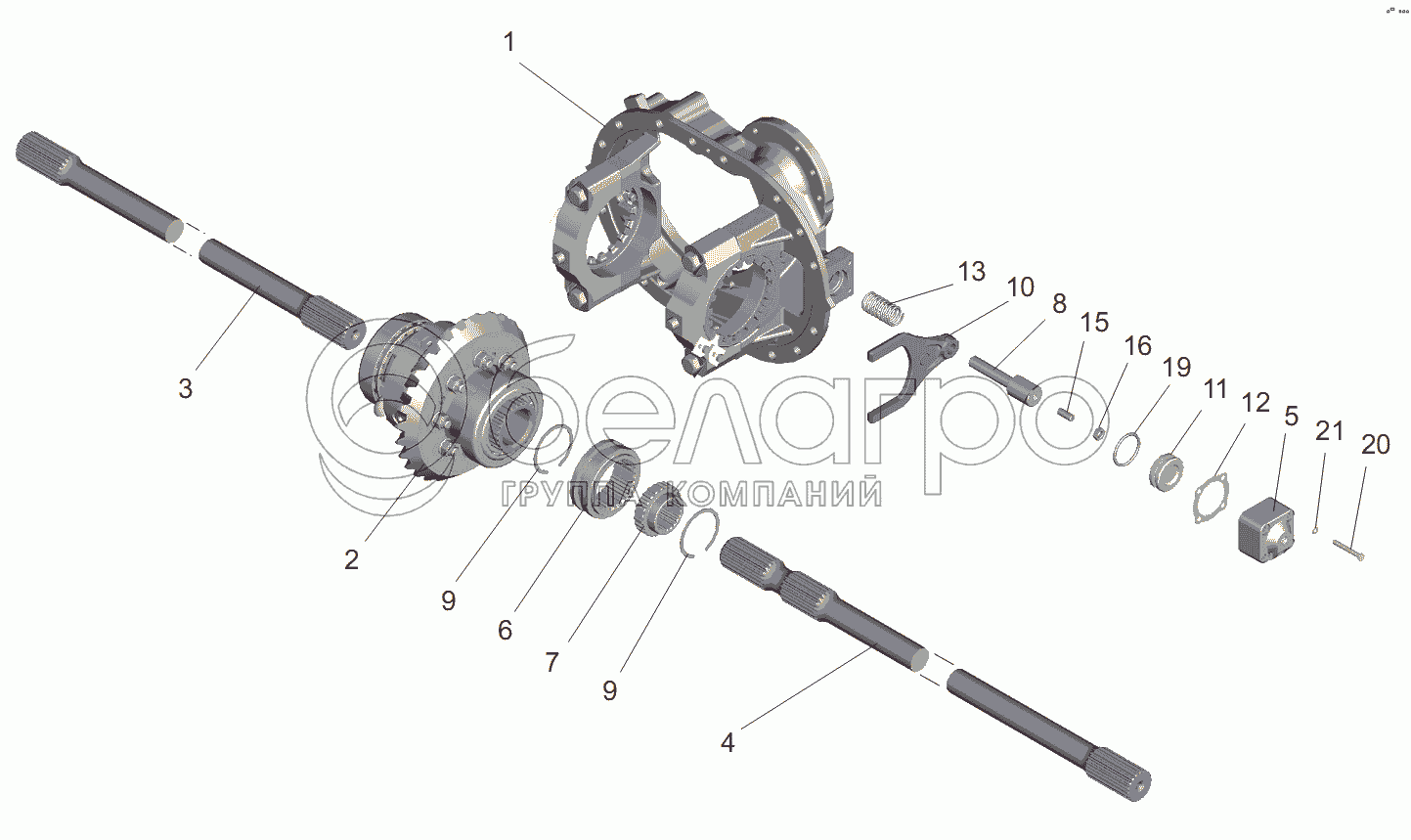 Каталог запасных частей к технике: МАЗ-551605. Редуктор среднего моста. Межколесная блокировка дифференциала