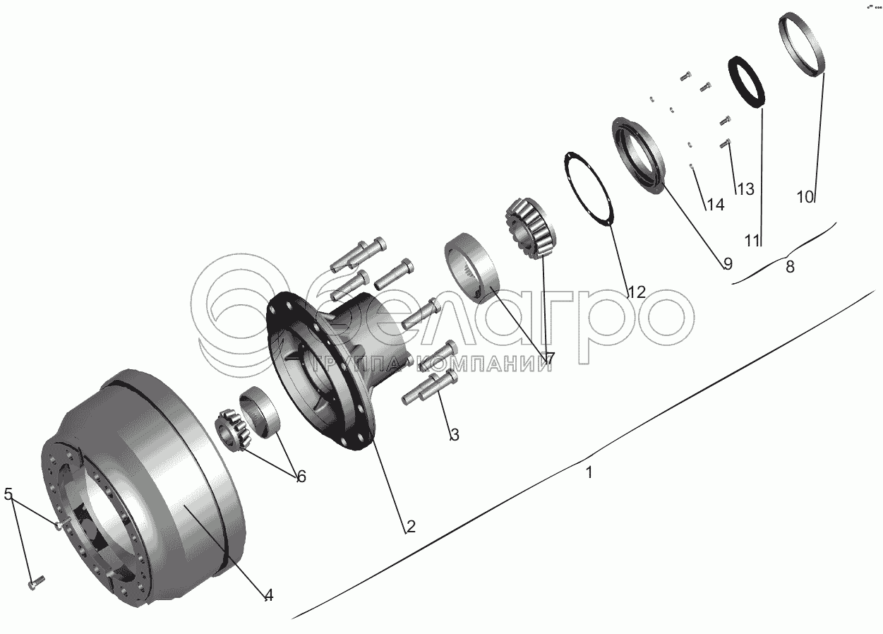 Каталог запасных частей к технике: МАЗ-551605. Ступица переднего колеса
