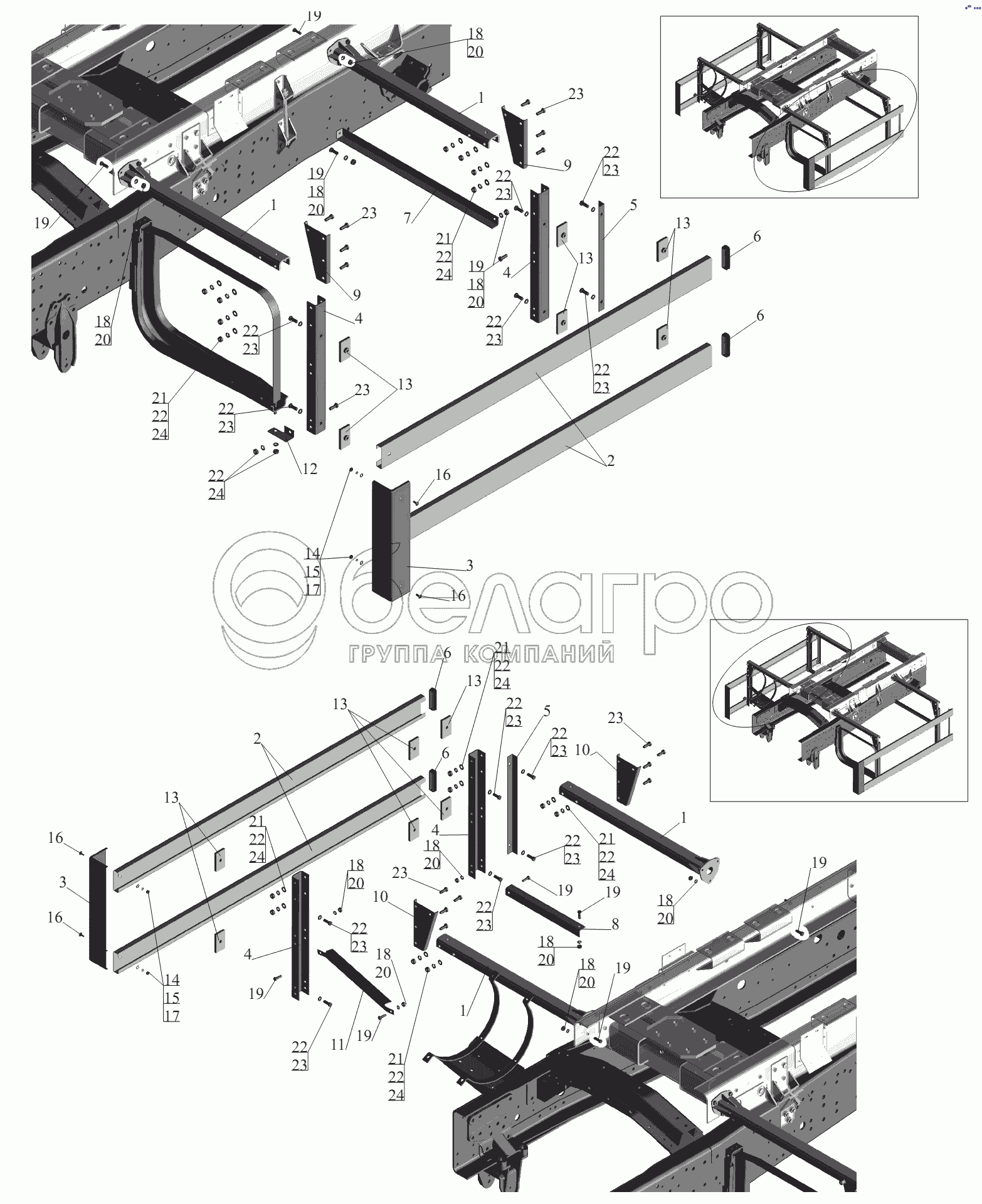 Каталог запасных частей к технике: МАЗ-551605. Установка бокового ограждения 551605-2800040