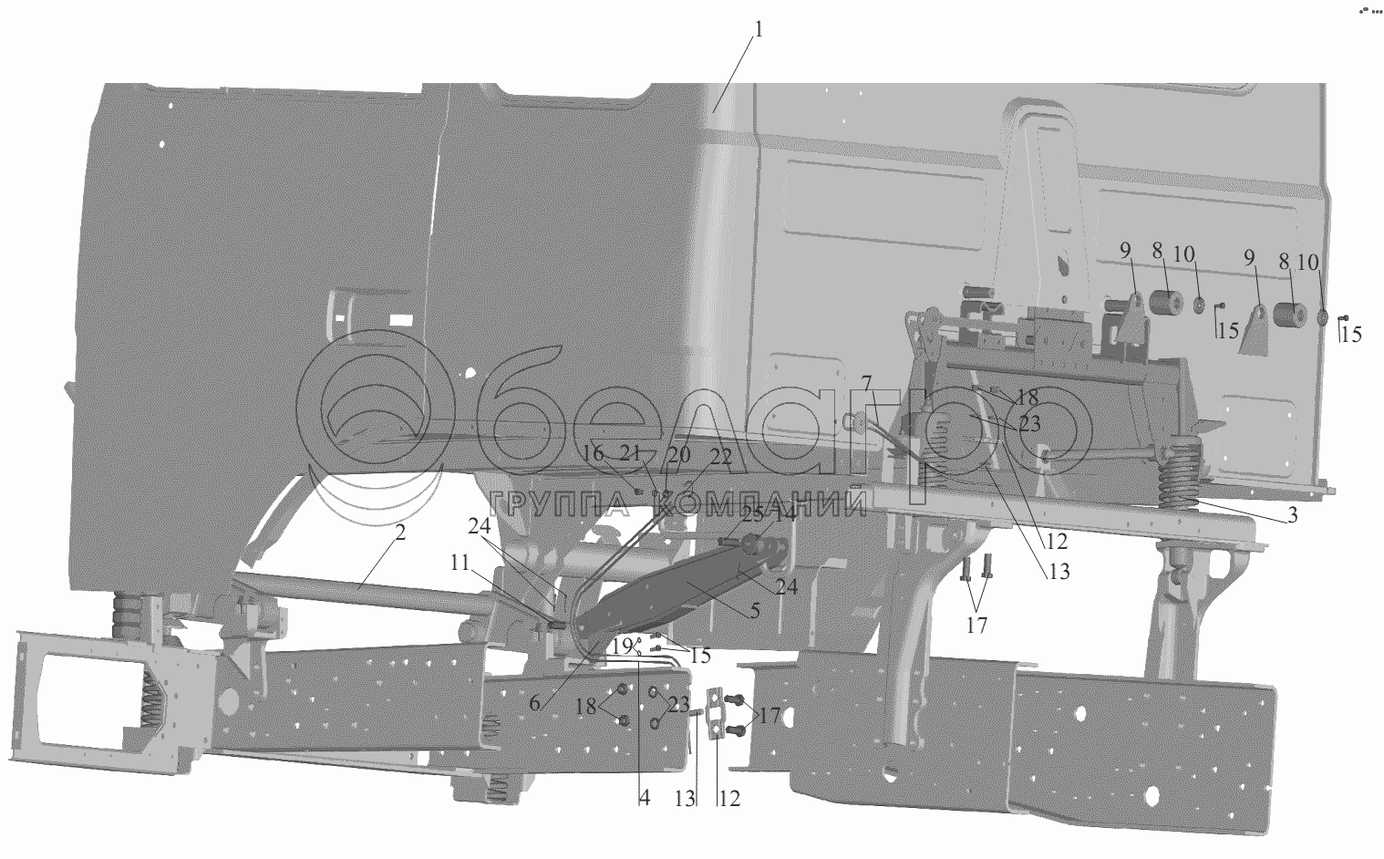 Каталог запасных частей к технике: МАЗ-551605. Установка большой подрессореной кабины