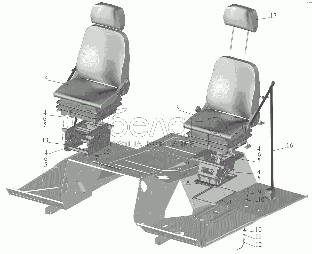 Каталог запасных частей к технике: МАЗ-551605. Установка и пневмопитание сидений 5433-6800006