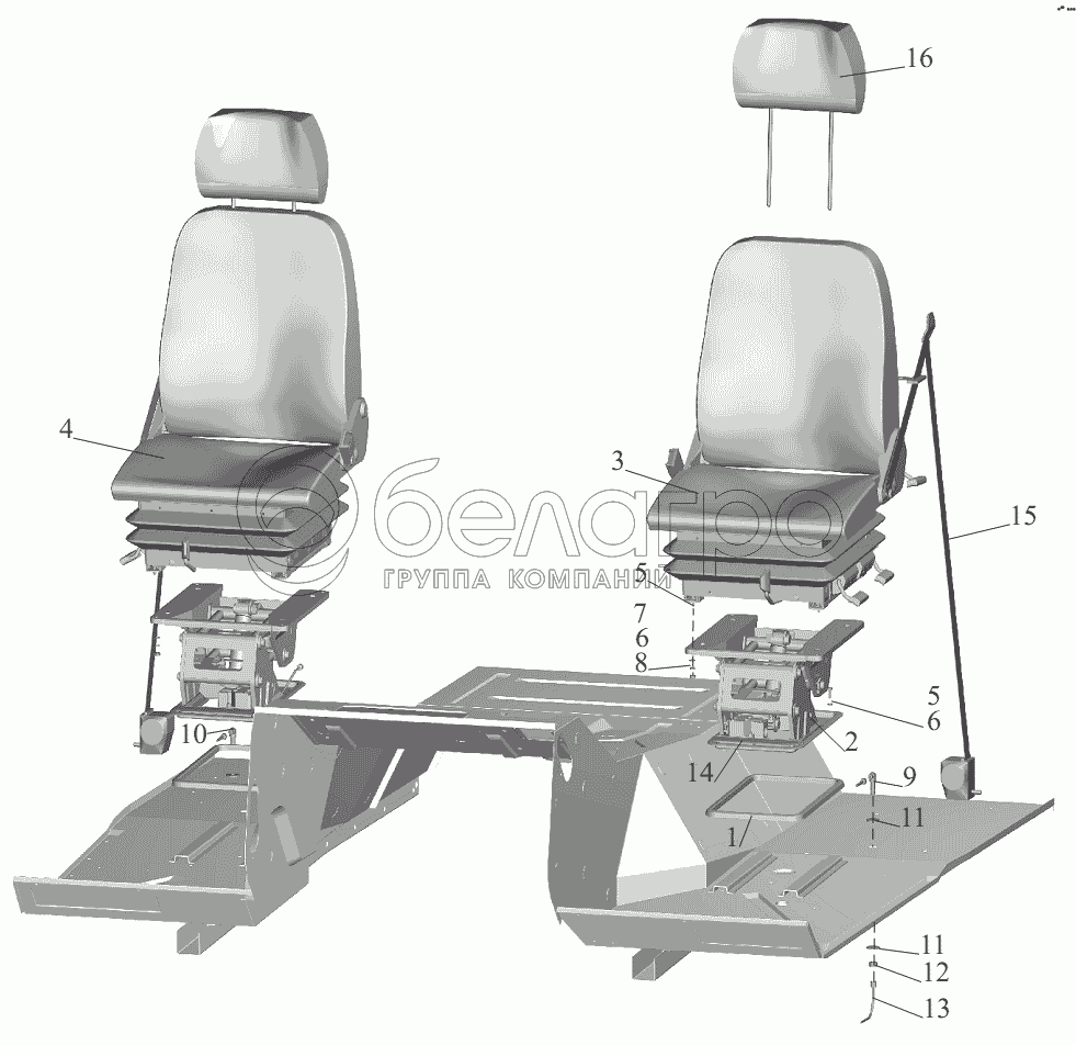 Каталог запасных частей к технике: МАЗ-551605. Установка и пневмопитание сидений 64221-6800006-10