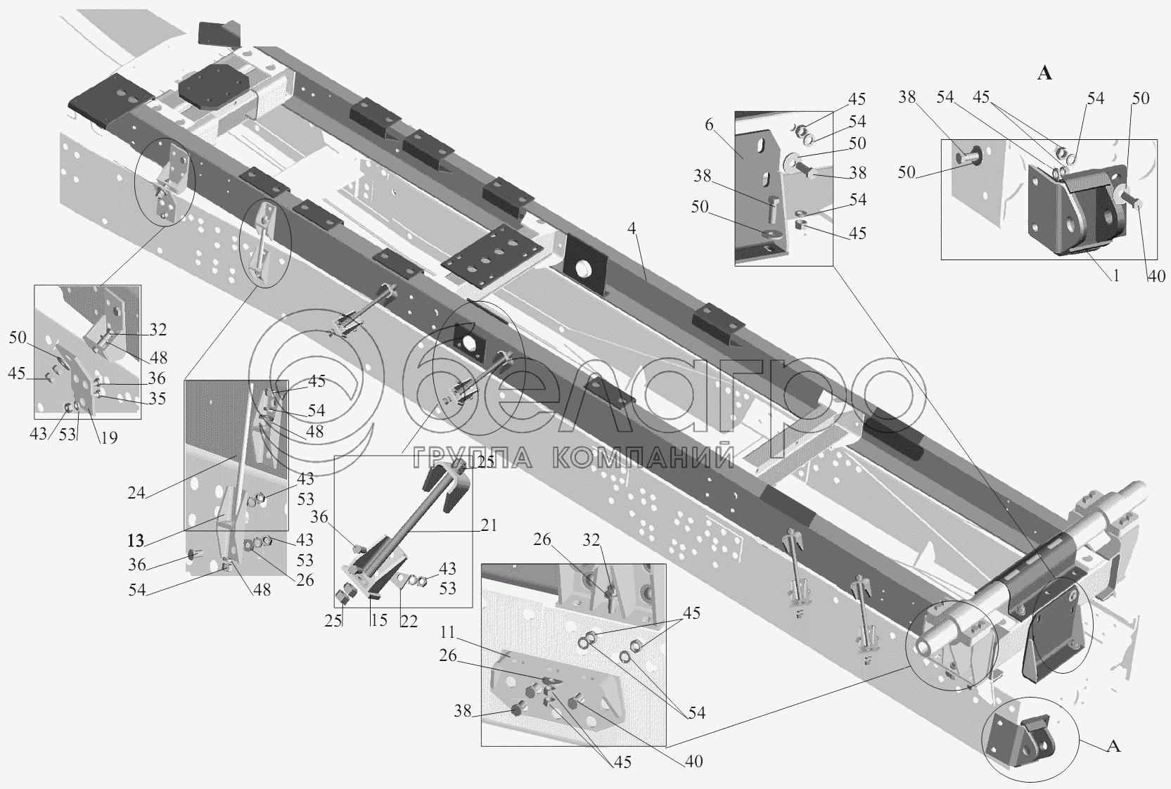Каталог запасных частей к технике: МАЗ-551605. Установка надрамника 5516-8600002-030