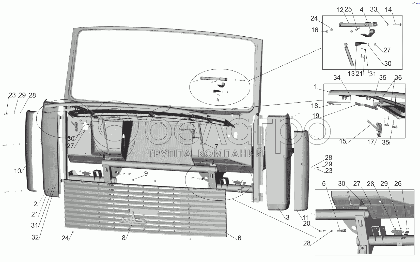 Каталог запасных частей к технике: МАЗ-551605. Установка облицовки и боковых щитков