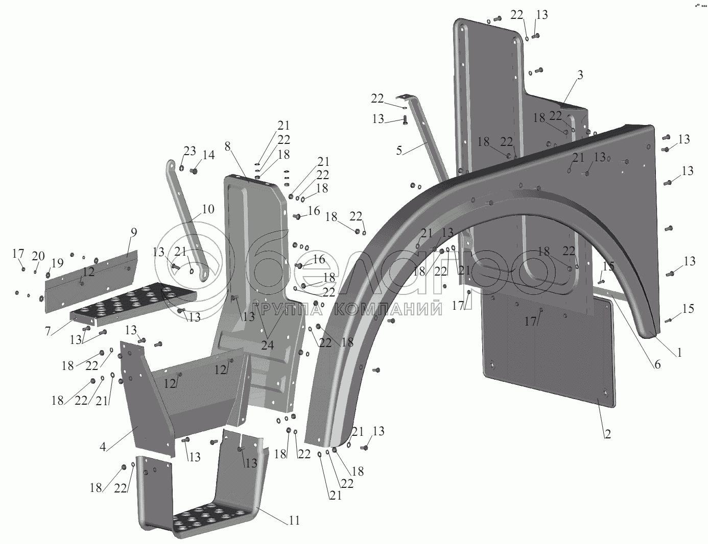 Каталог запасных частей к технике: МАЗ-551605. Установка оперения на большую кабину 64221-8400020