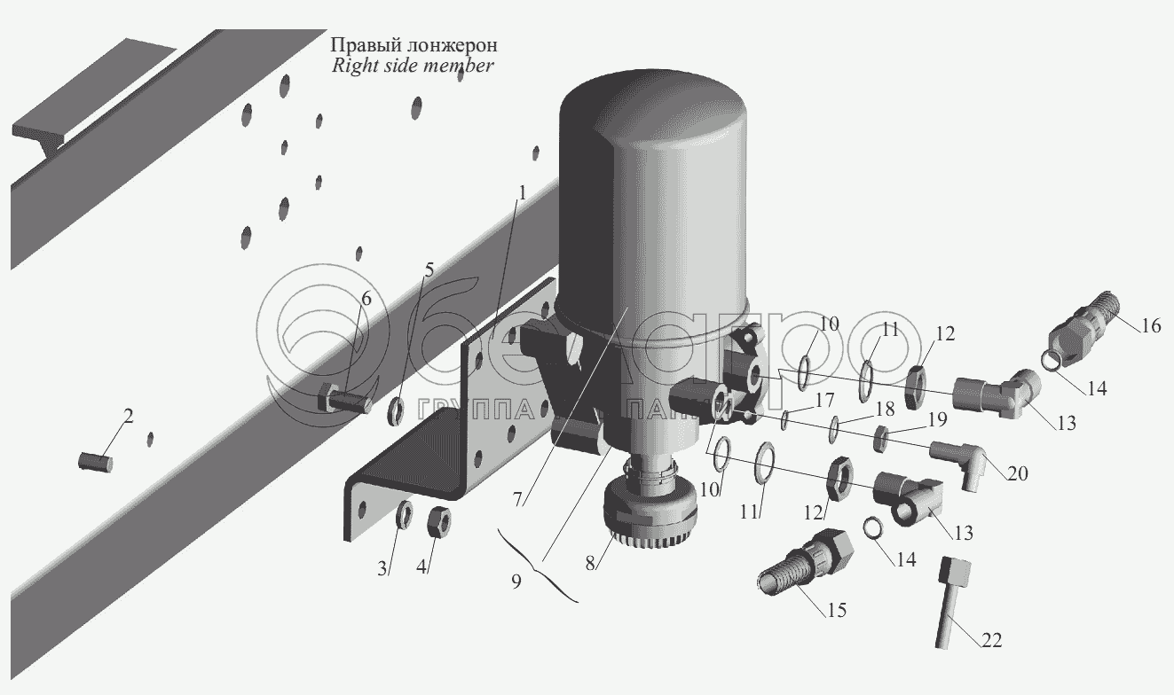 Каталог запасных частей к технике: МАЗ-551605. Установка осушителя воздуха 650108-3536004