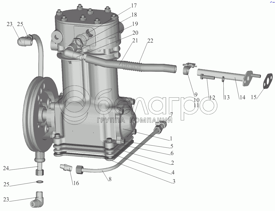 Каталог запасных частей к технике: МАЗ-551605. Установка пневмокомпрессора 642208-3500014 (-700)