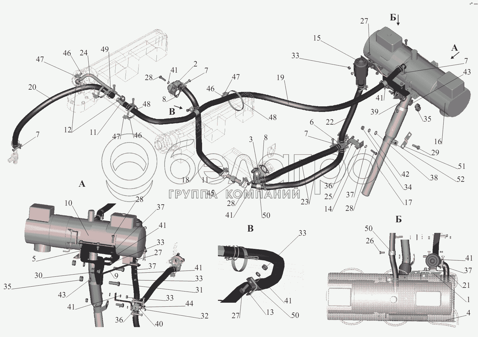 Каталог запасных частей к технике: МАЗ-551605. Установка подогревателя