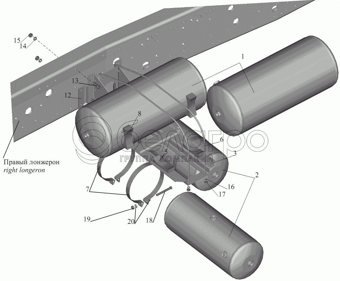 Каталог запасных частей к технике: МАЗ-551605. Установка ресиверов 551605-3513004