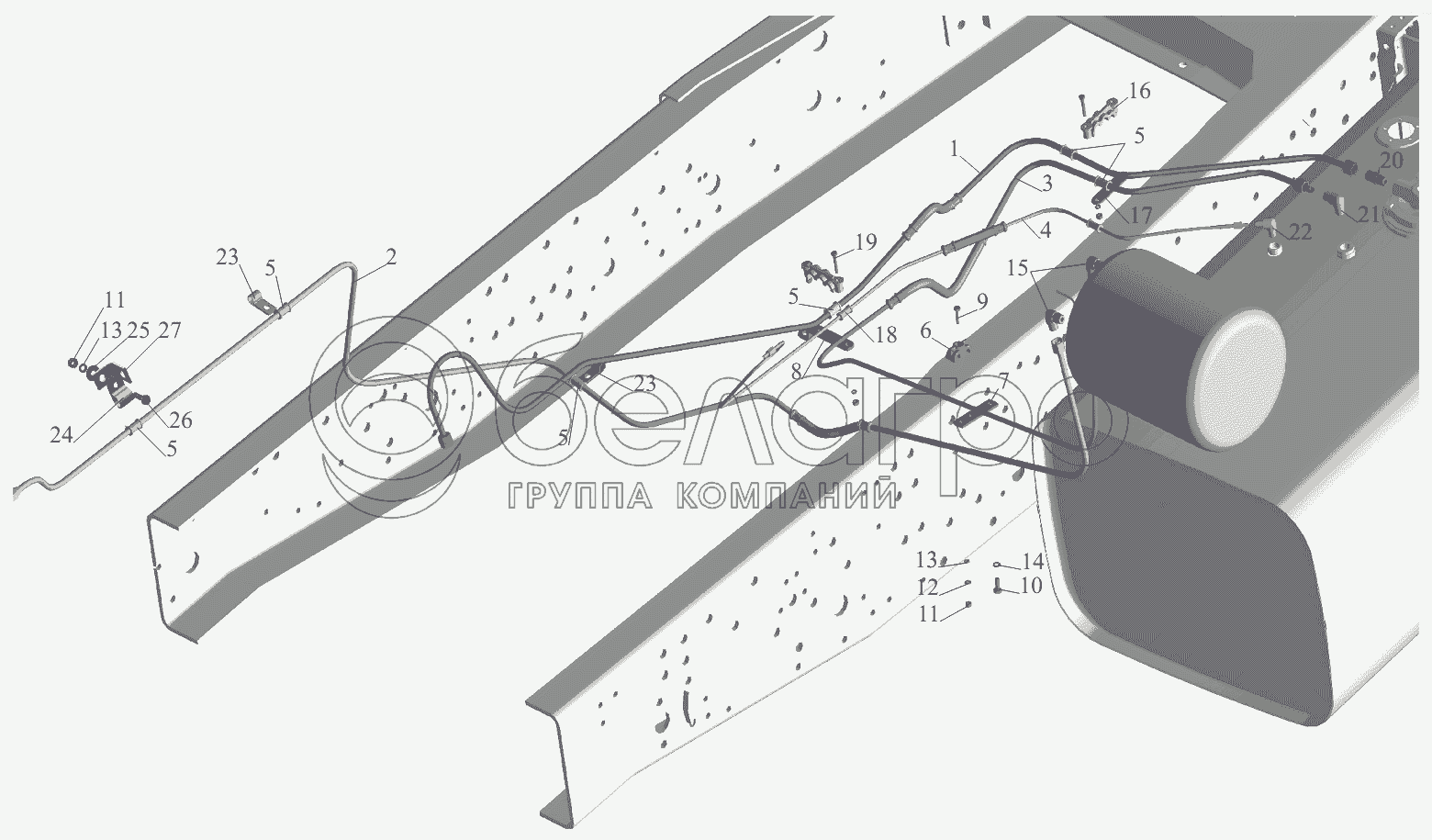 Каталог запасных частей к технике: МАЗ-551605. Установка топливопроводов 551605-1104002 (с подогревателем)