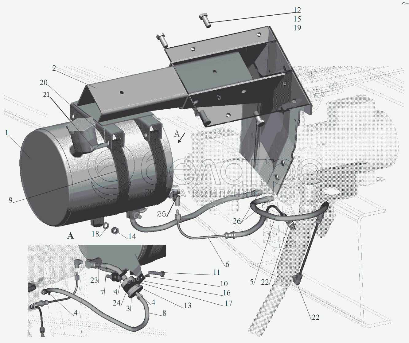 Каталог запасных частей к технике: МАЗ-551605. Установка топливопроводов подогревателя