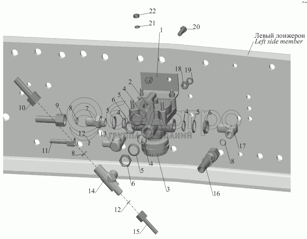 Каталог запасных частей к технике: МАЗ-551605. Установка ускорительного клапана 643008-3518004