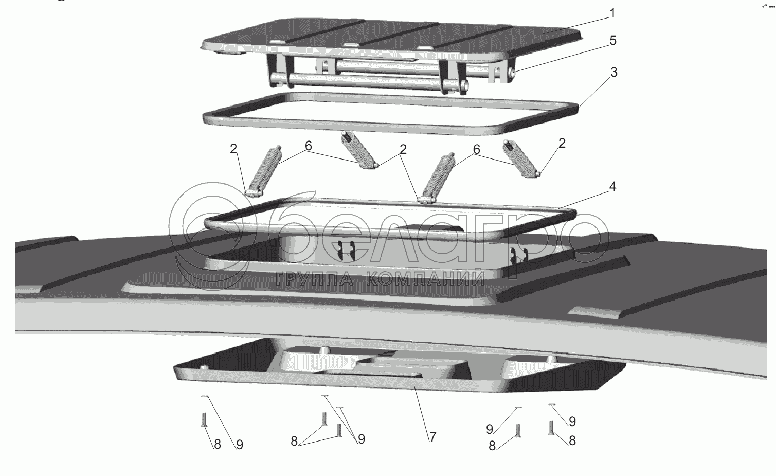 Каталог запасных частей к технике: МАЗ-551605. Установка вентиляционного люка 64221-5700010
