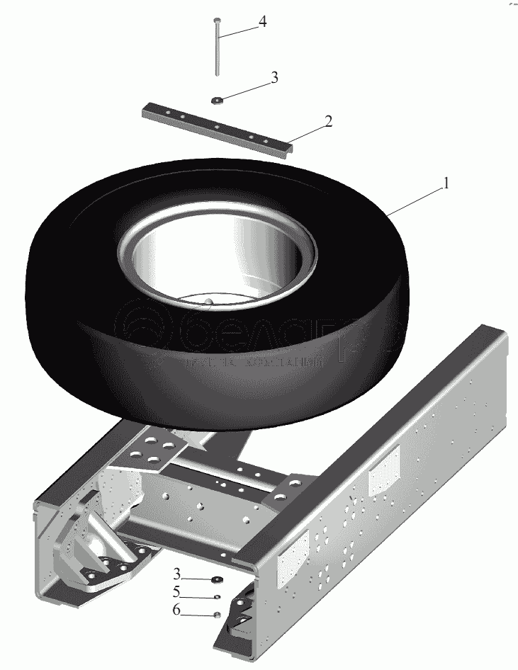 Каталог запасных частей к технике: МАЗ-551605. Установка запасного колеса 551605-3100001(-700)
