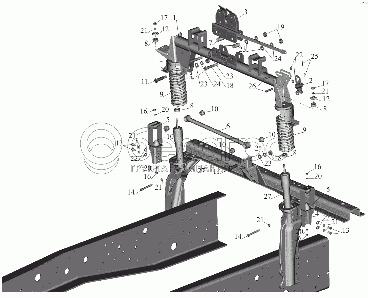 Каталог запасных частей к технике: МАЗ-551605. Заднее подрессоривание большой кабины 64221-5001800