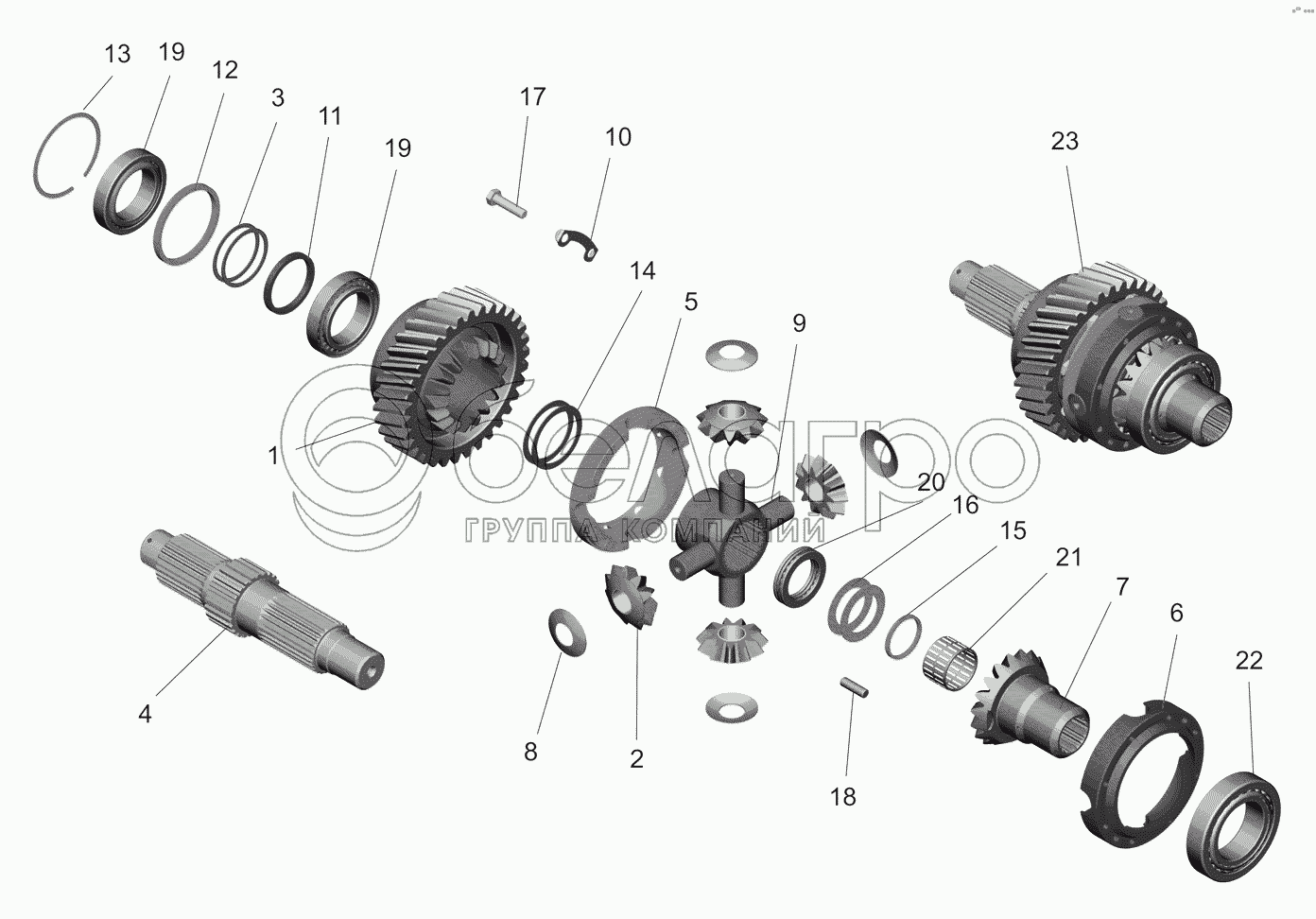 Каталог запасных частей к технике: МАЗ-551608, 630308. Редуктор среднего моста. Дифференциал межосевой