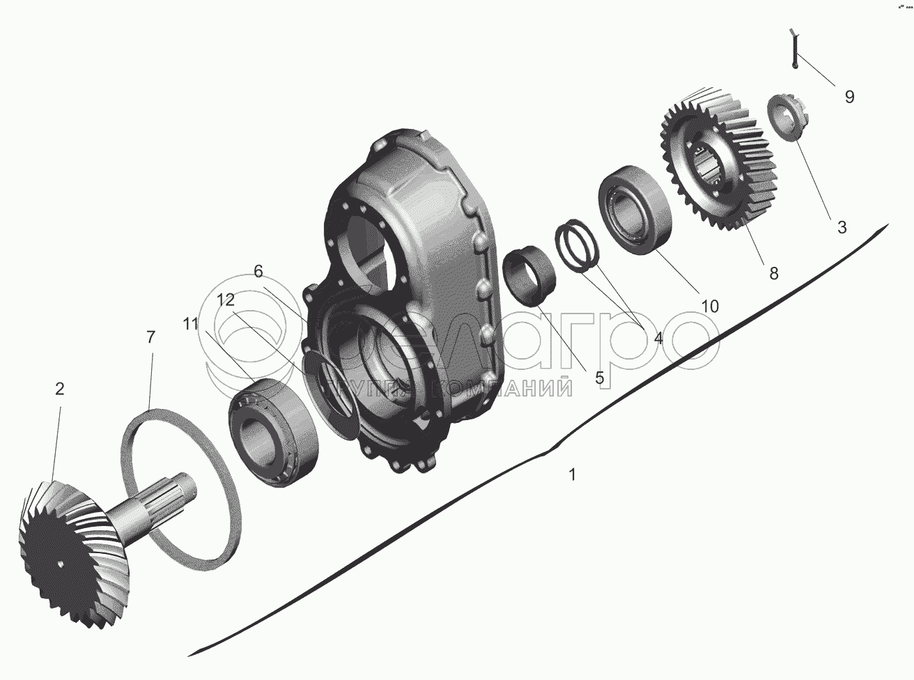 Каталог запасных частей к технике: МАЗ-551608, 630308. Редуктор среднего моста. Шестерня ведущая