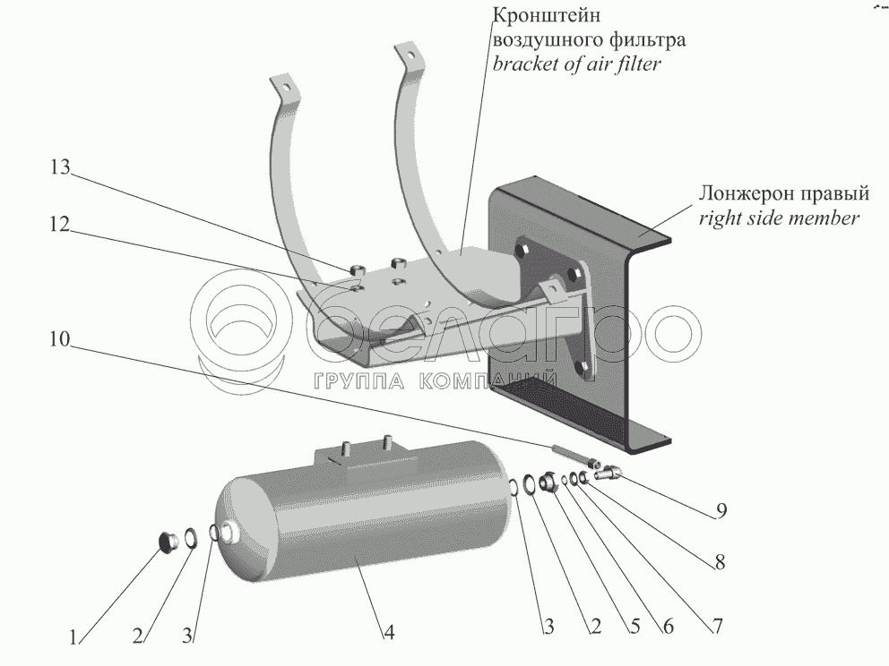 Каталог запасных частей к технике: МАЗ-551608, 630308. Ресивер регенерации 64226-3513005