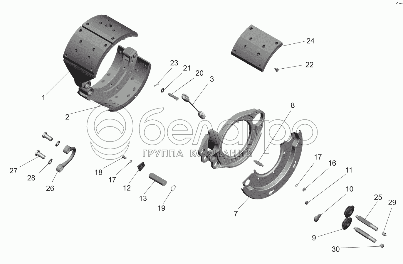 Каталог запасных частей к технике: МАЗ-551608, 630308. Тормоз колеса среднего моста