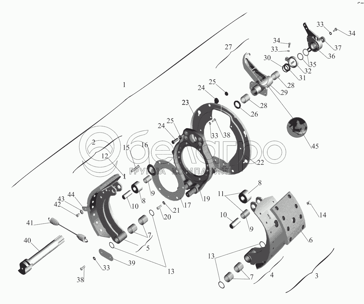 Каталог запасных частей к технике: МАЗ-551608, 630308. Тормозной механизм передних колес