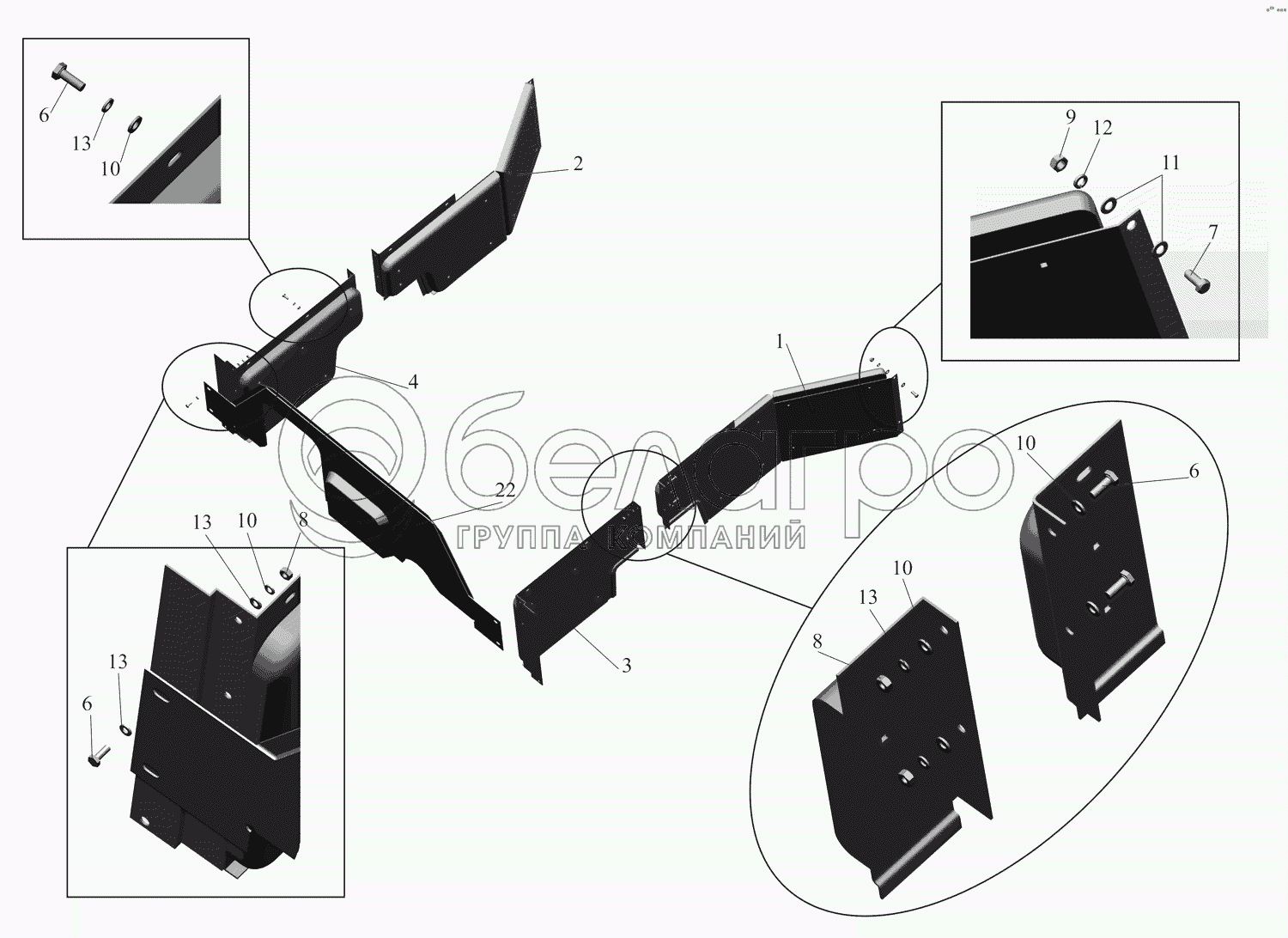 Каталог запасных частей к технике: МАЗ-551608, 630308. Установка экранов 642208-8400030-070