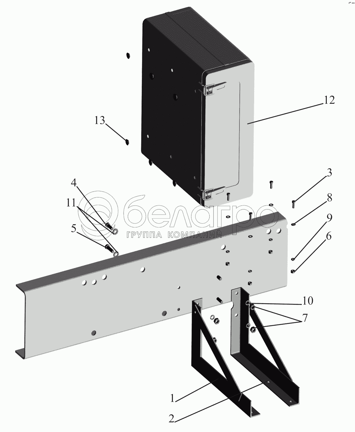 Каталог запасных частей к технике: МАЗ-551608, 630308. Установка инструментального ящика 551608-8500009