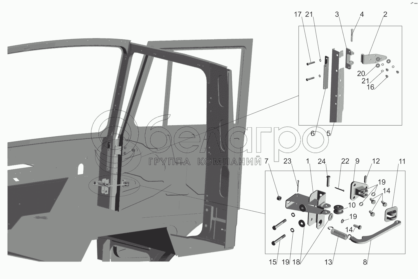 Каталог запасных частей к технике: МАЗ-551608, 630308. Установка ограничителя и петель двери