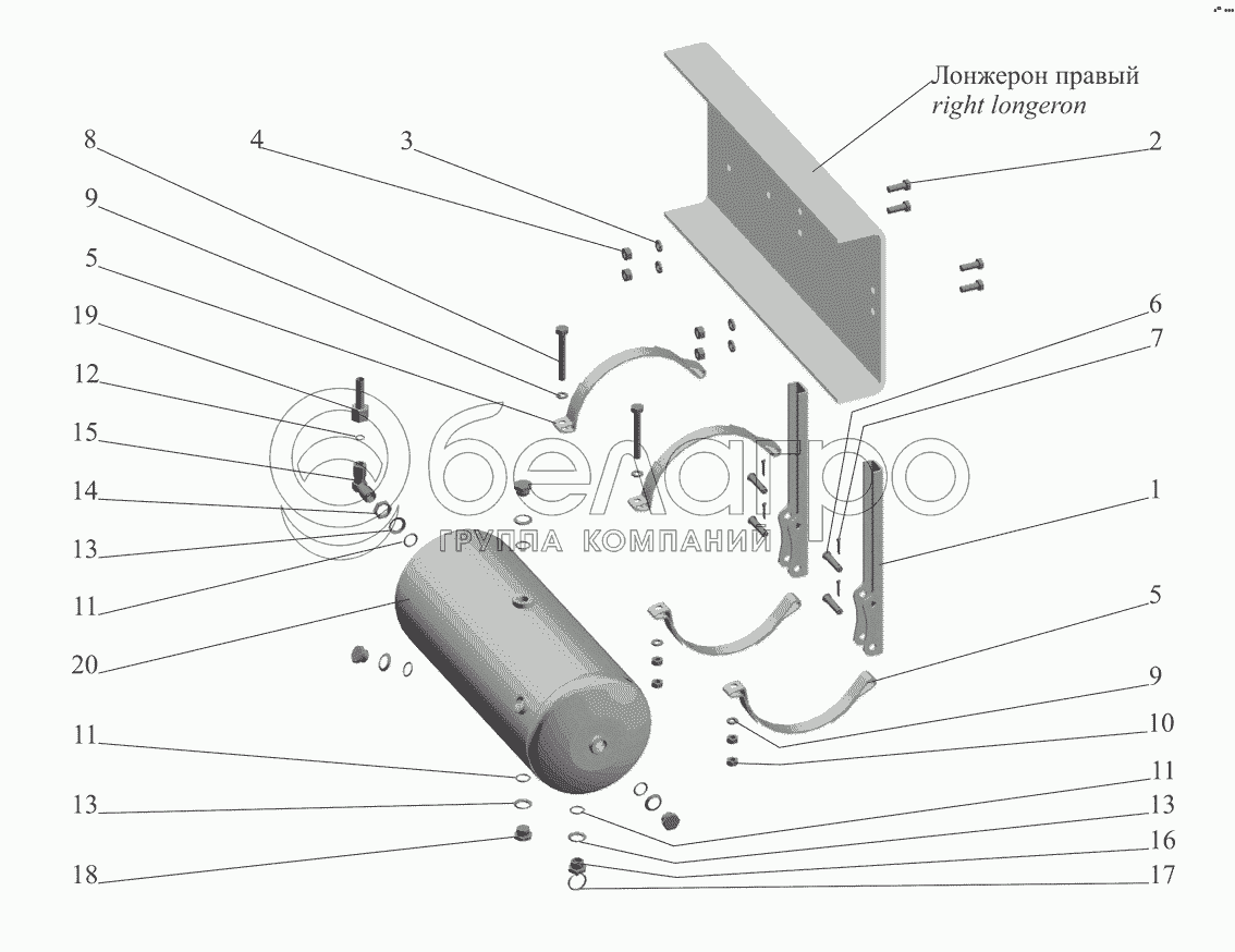Каталог запасных частей к технике: МАЗ-551608, 630308. Установка ресивера 64229-3513007