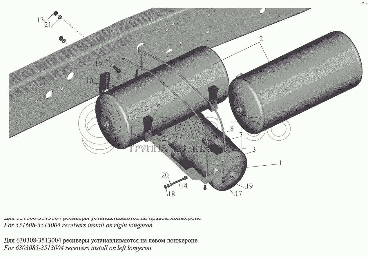 Каталог запасных частей к технике: МАЗ-551608, 630308. Установка ресиверов 551608-3513004, 630308-3513004