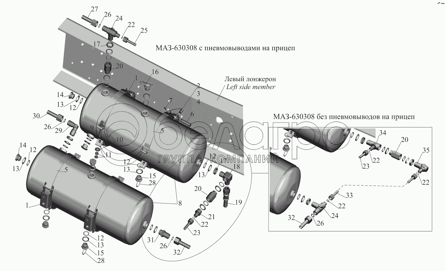Каталог запасных частей к технике: МАЗ-551608, 630308. Установка ресиверов 63031-3513004