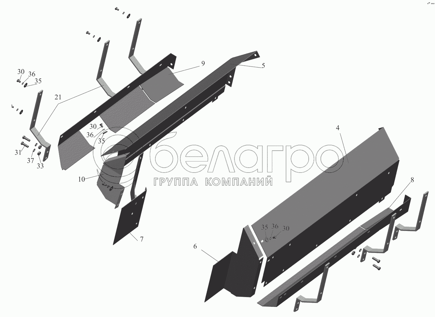 Каталог запасных частей к технике: МАЗ-551608, 630308. Установка шумоизоляционных экранов 630308-1061003