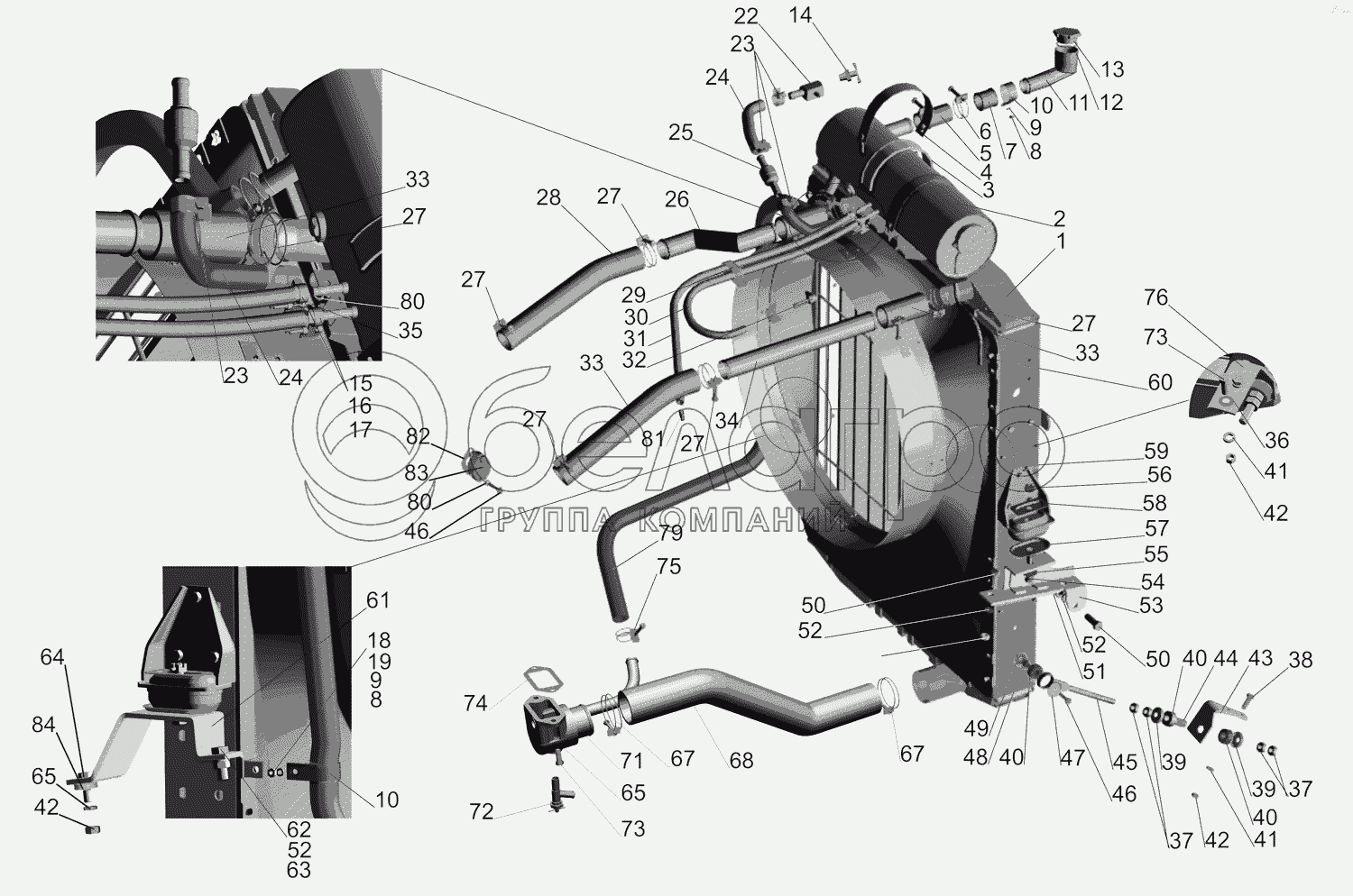 Каталог запасных частей к технике: МАЗ-551608, 630308. Установка системы охлаждения 543208-1300005-020