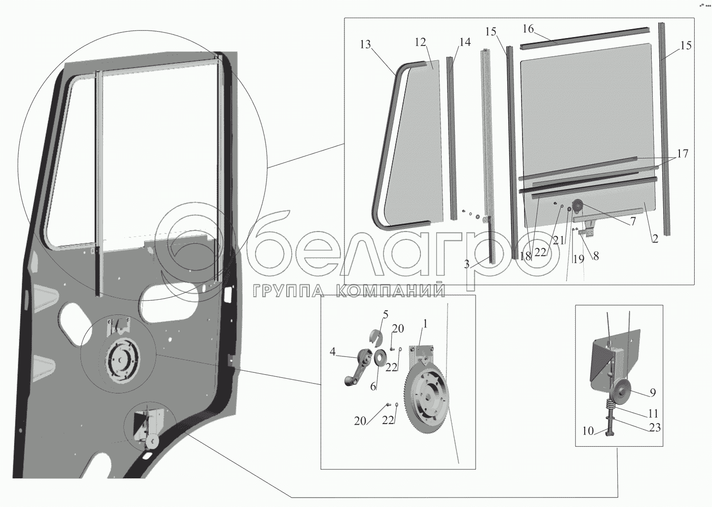 Каталог запасных частей к технике: МАЗ-551608, 630308. Установка стеклоподъемника и ручки стеклоподъемника
