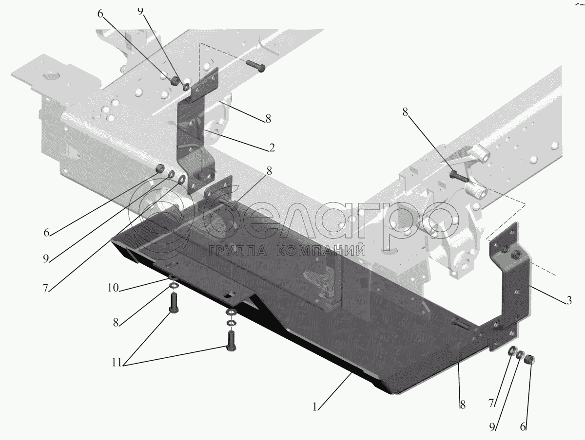 Каталог запасных частей к технике: МАЗ-551608, 630308. Установка защиты радиатора 630308-1300050