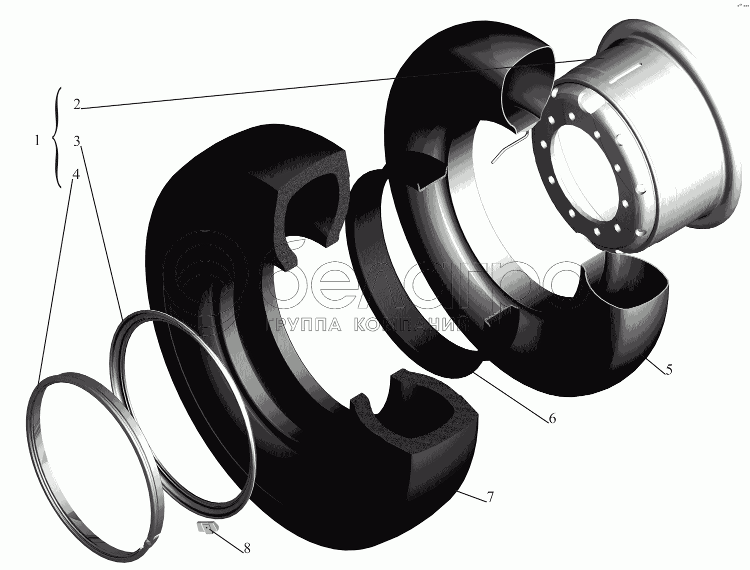 Каталог запасных частей к технике: МАЗ-551669. Колесо, камера и покрышка 551607-3101011-10