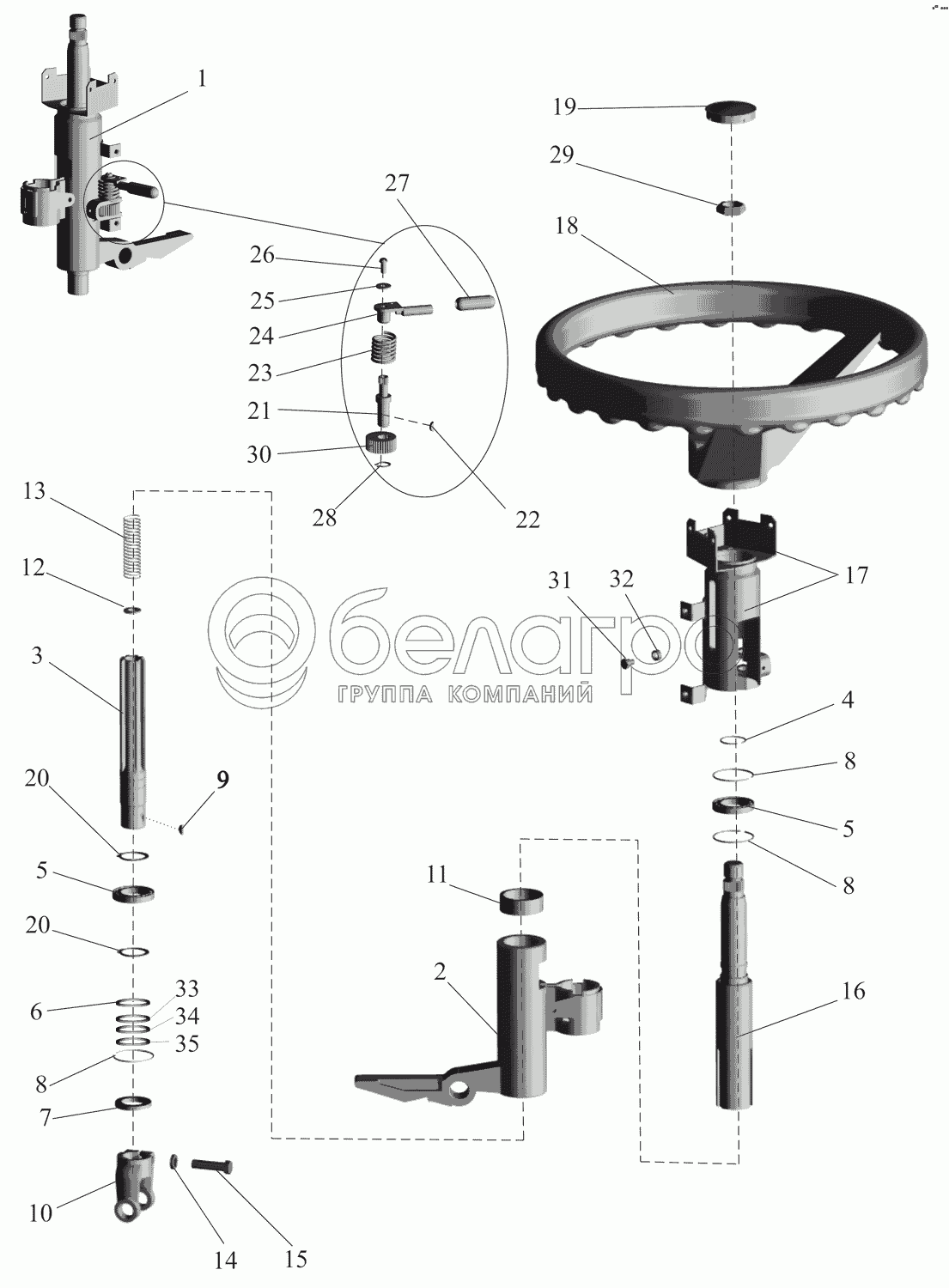 Каталог запасных частей к технике: МАЗ-551669. Колонка рулевая с колесом рулевого управления