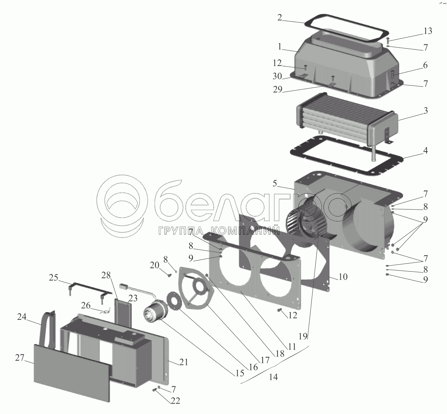 Каталог запасных частей к технике: МАЗ-551669. Отопитель 64221-8101010