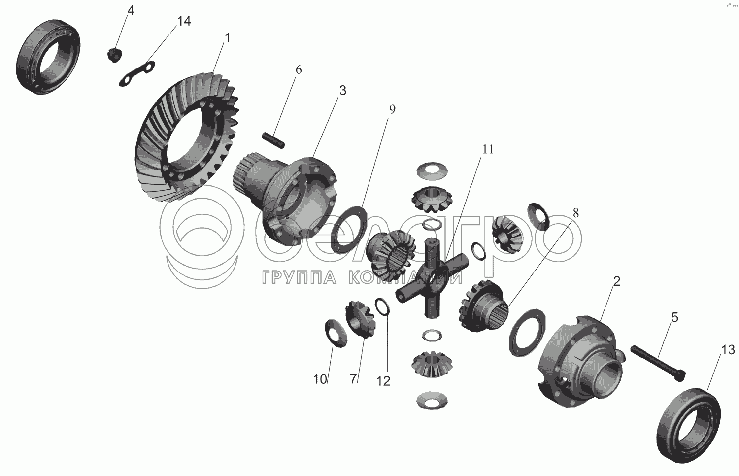 Каталог запасных частей к технике: МАЗ-551669. Редуктор среднего моста. Дифференциал