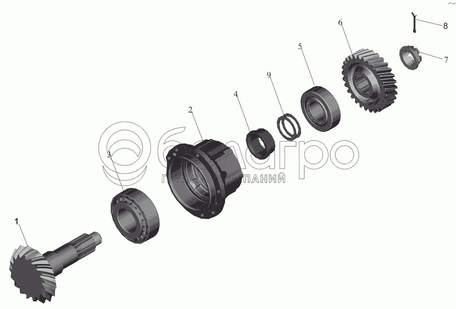 Каталог запасных частей к технике: МАЗ-551669. Редуктор среднего моста. Шестерня ведущая