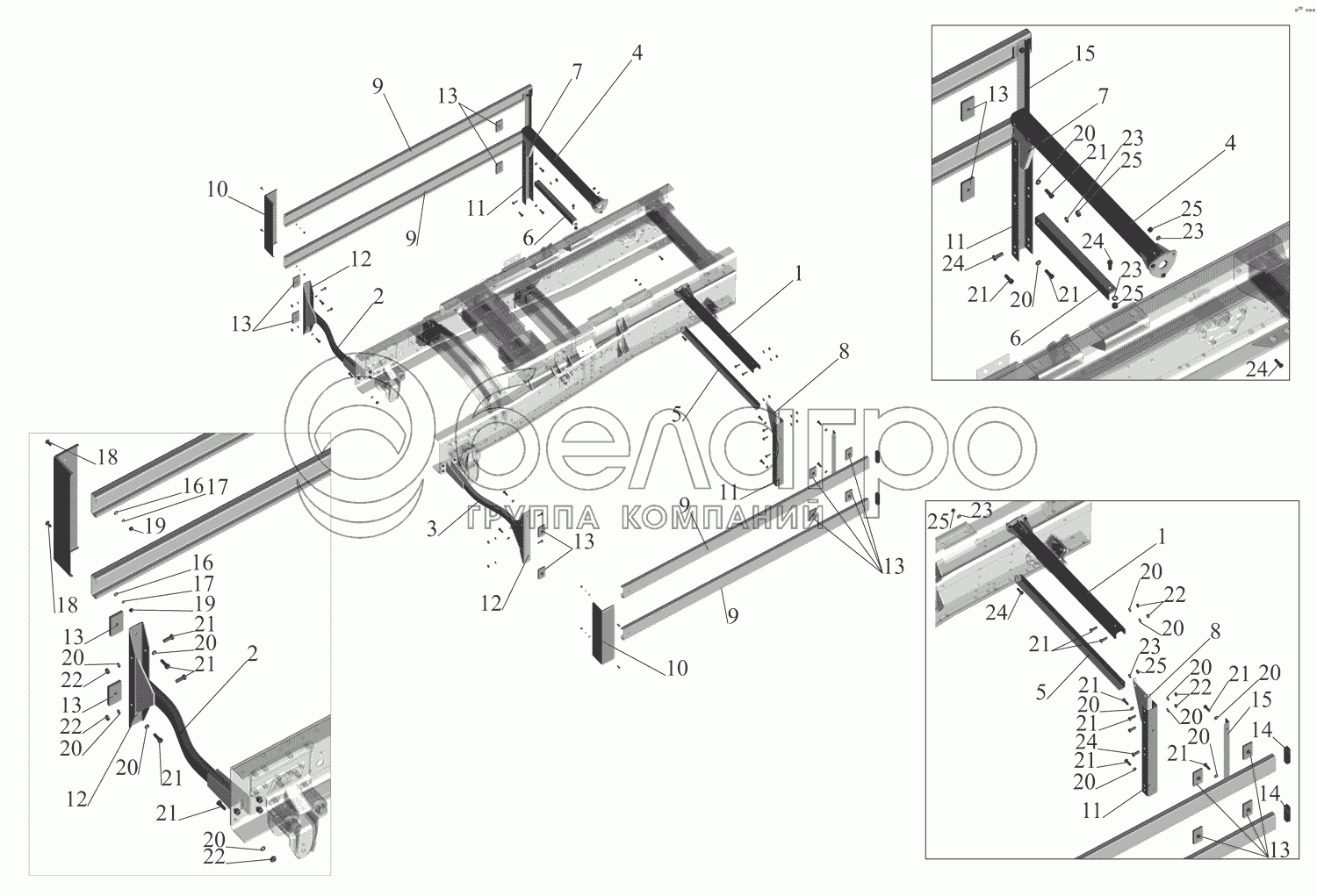 Каталог запасных частей к технике: МАЗ-551669. Установка бокового ограждения 551669-2800040-010