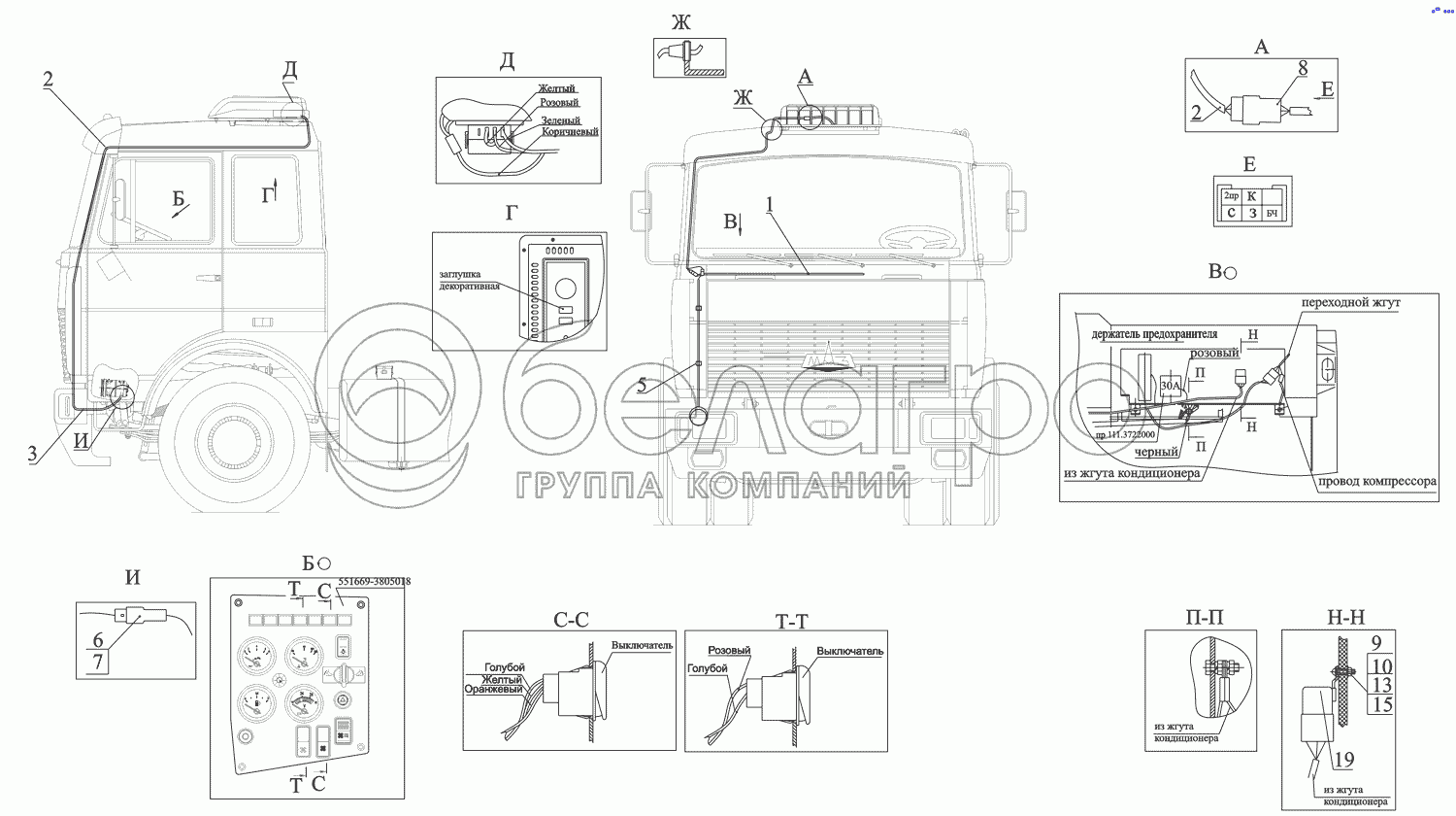 Каталог запасных частей к технике: МАЗ-551669. Установка электрооборудования кондиционера 64226-3700092-020