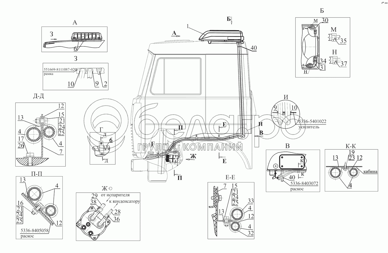 Каталог запасных частей к технике: МАЗ-551669. Установка кондиционера 551669-8100004