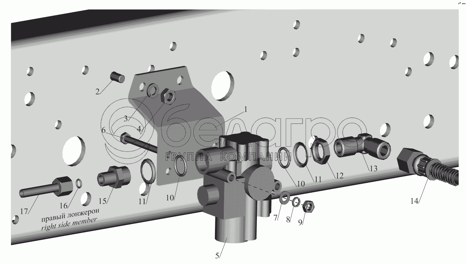 Каталог запасных частей к технике: МАЗ-551669. Установка передних модуляторов и присоединительной арматуры
