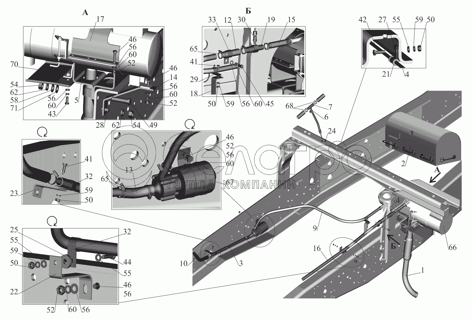 Каталог запасных частей к технике: МАЗ-551669. Установка подогревателя 551669-1015001