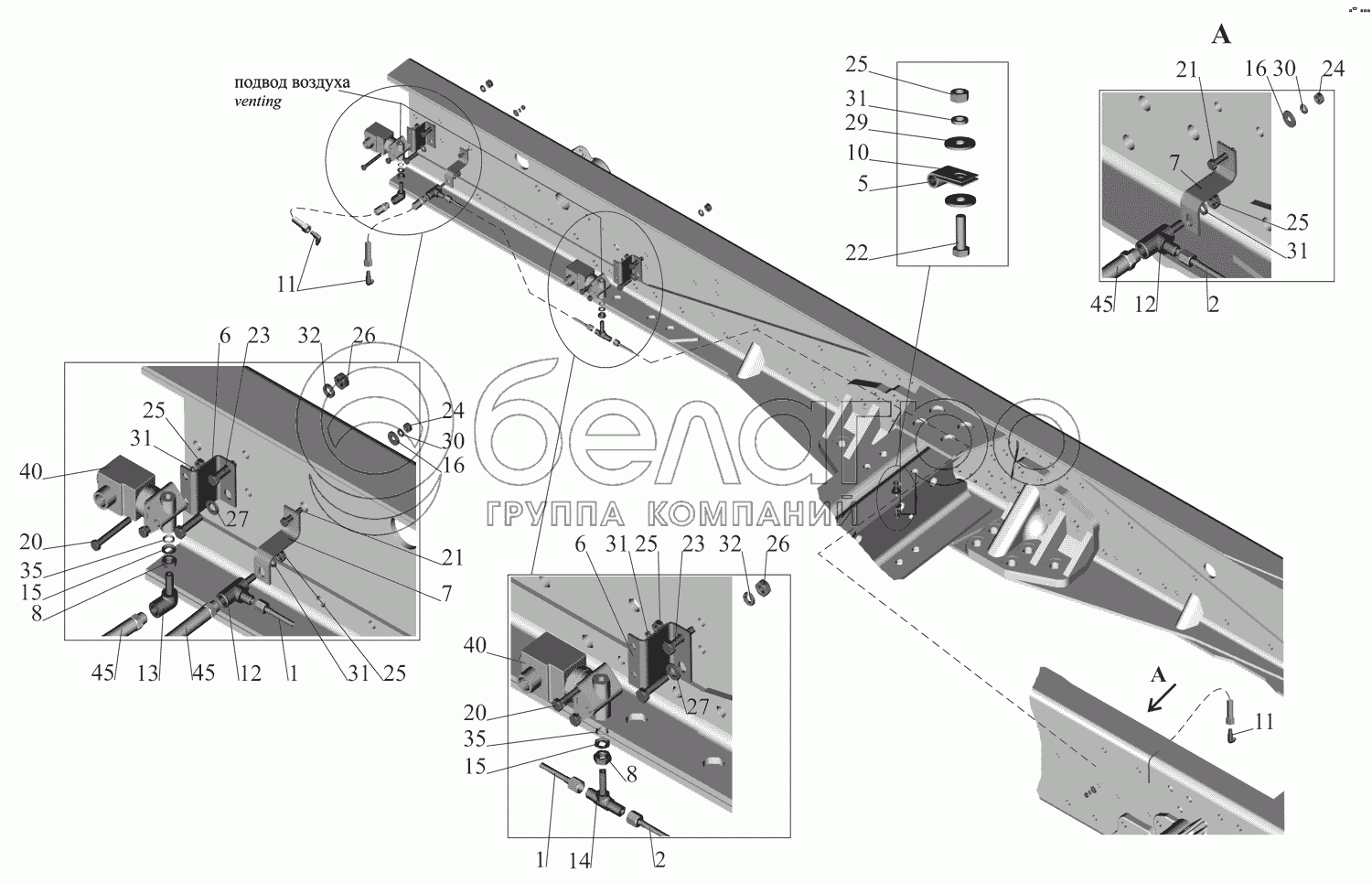 Каталог запасных частей к технике: МАЗ-551669. Установка привода управления блокировкой 5516-2500024
