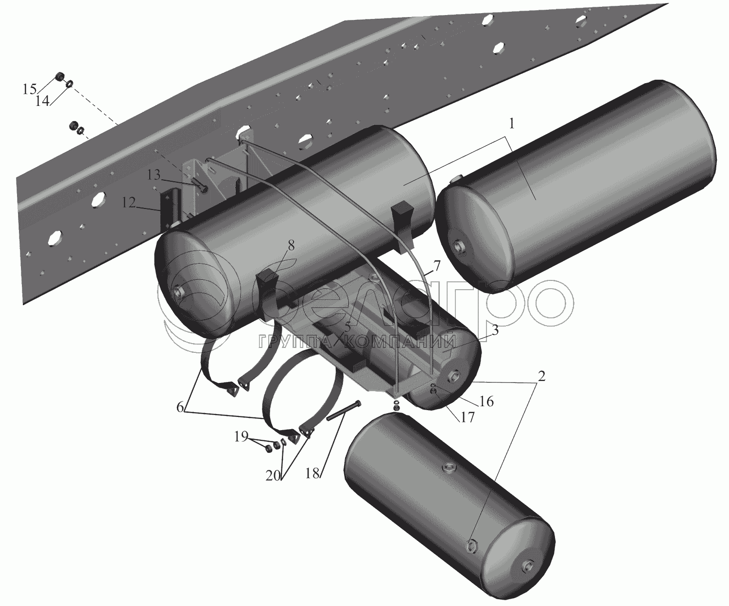 Каталог запасных частей к технике: МАЗ-551669. Установка ресиверов 551605-3513004