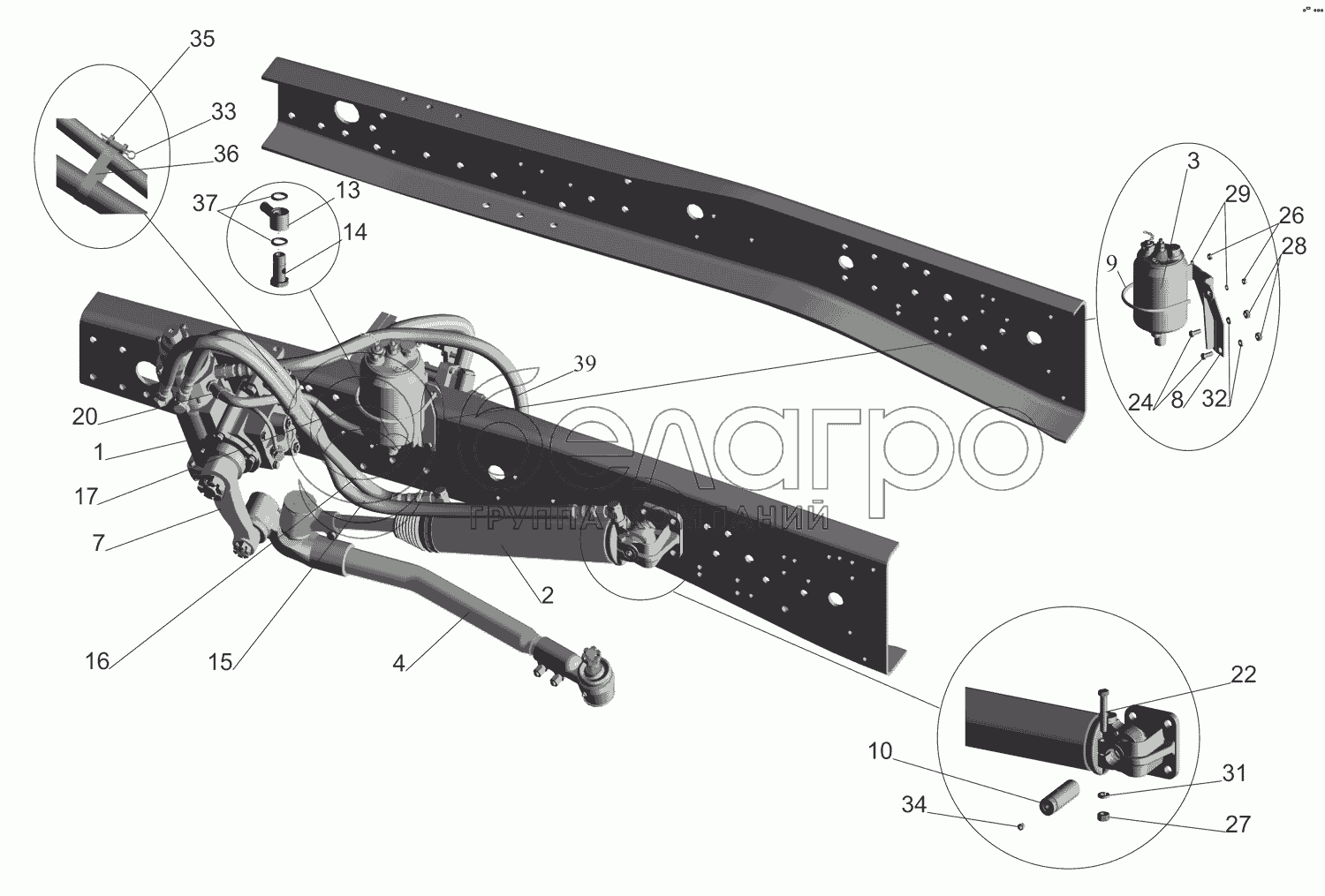 Каталог запасных частей к технике: МАЗ-551669. Установка рулевого управления