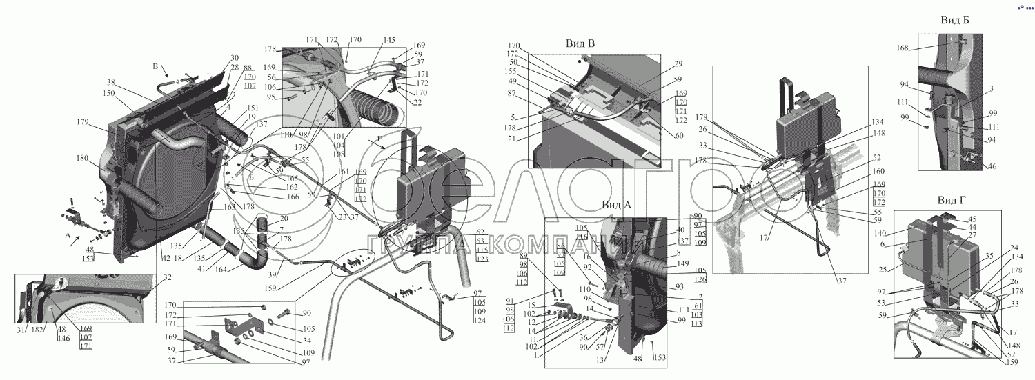 Каталог запасных частей к технике: МАЗ-551669. Установка системы охлаждения 551669-1300005-020