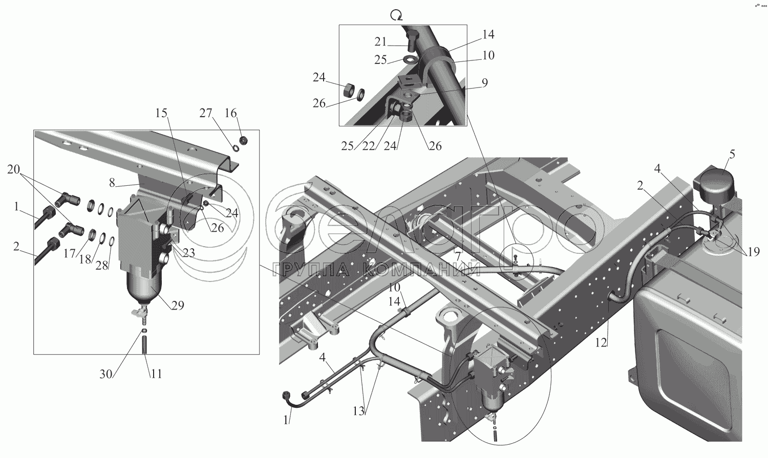 Каталог запасных частей к технике: МАЗ-551669. Установка топливопроводов 551669-1104002-050